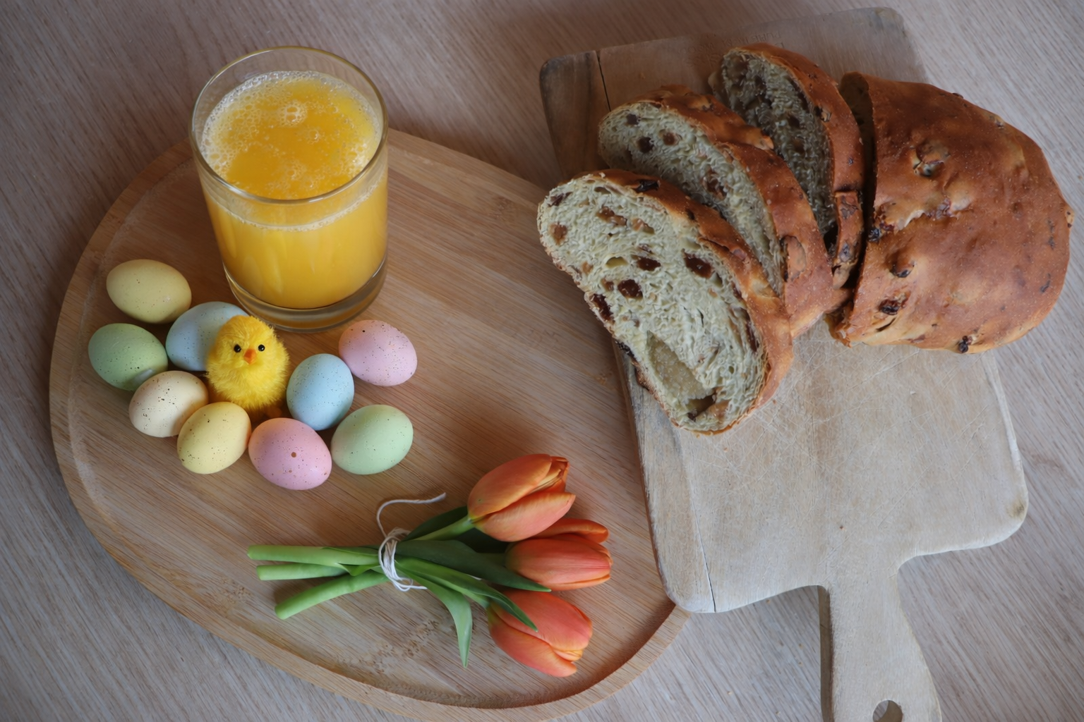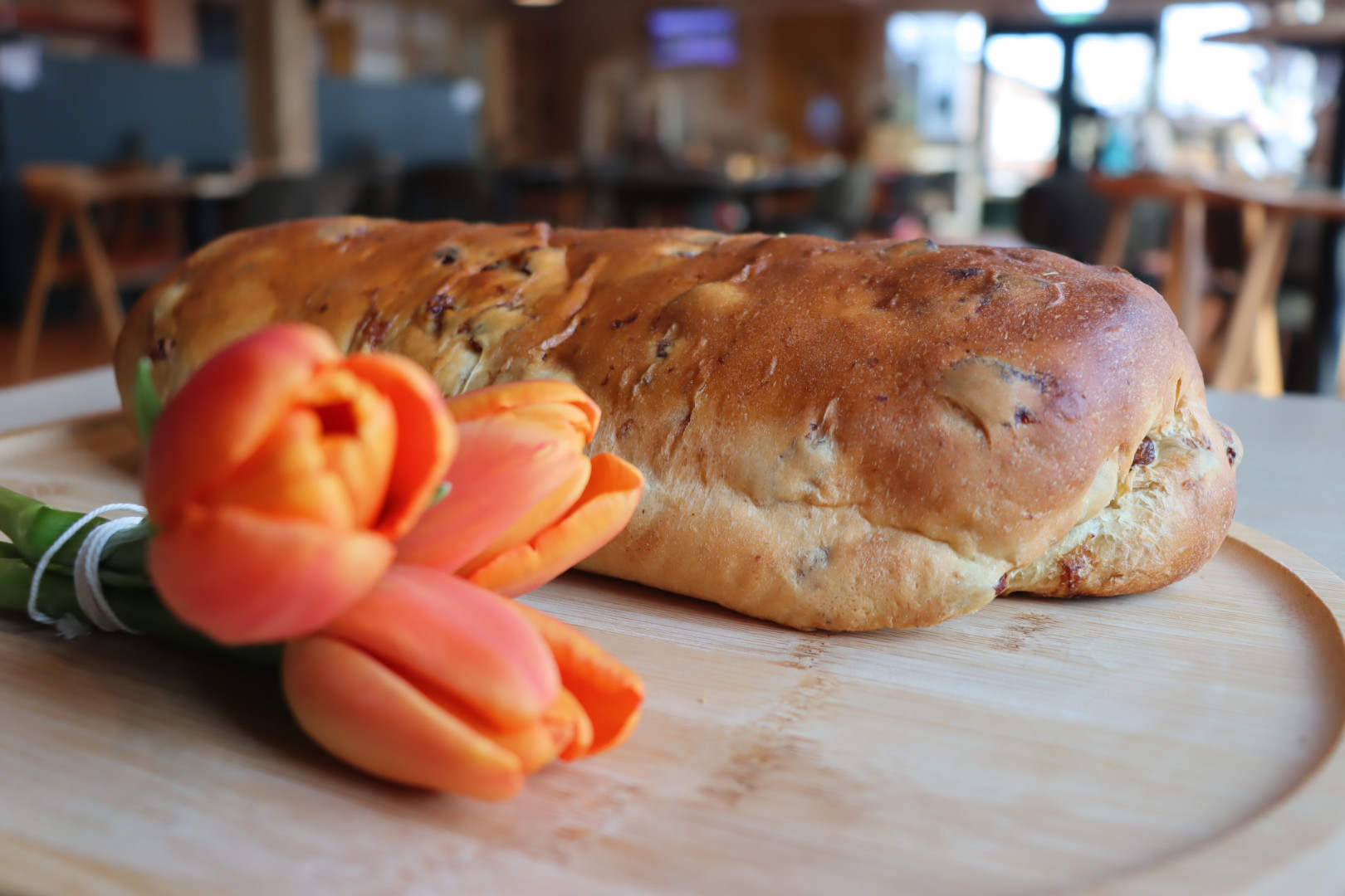 Ons paasbrood wordt vers gebakken in onze eigen bakkerij: luchtig, rijkgevuld met rozijnen en een kern van romige amandelspijs. Heerlijk zacht van smaak en perfect voor het paasontbijt of de brunch. Een echte paasklassieker.